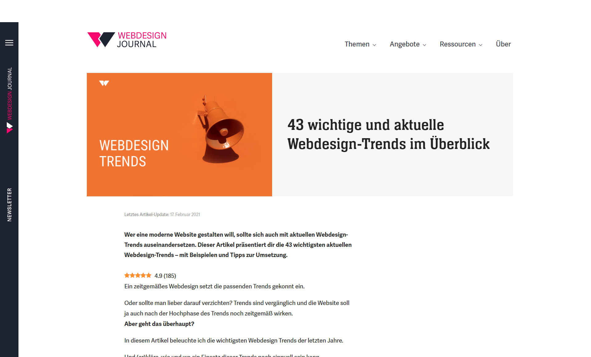 43 wichtige und aktuelle Webdesign-Trends im Überblickha avMärz 15, 2021Deutsch, Grafik & Design Link Wer eine moderne Website gestalten will, sollte sich auch mit aktuellen Webdesign-Trends auseinandersetzen. Dieser Artikel präsentiert dir die 43 wichtigsten aktuellen Webdesign-Trends – mit Beispielen und Tipps zur Umsetzung.
